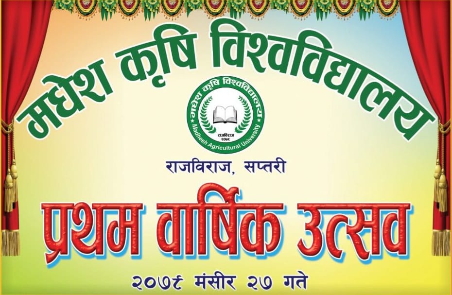 जनकपुरधाम। मधेश सरकारले स्थापना गरेको मधेश कृषि विश्वविद्यालयले बिना कुनै अध्यापन गराएर एक वर्ष पुरा गरेको छ । अध्यादेश मार्फत मधेश सरकारले स्थापना गरेको कृषि विश्वविद्यालयले मंगलबार एक वर्ष पुरा गरेको हो।