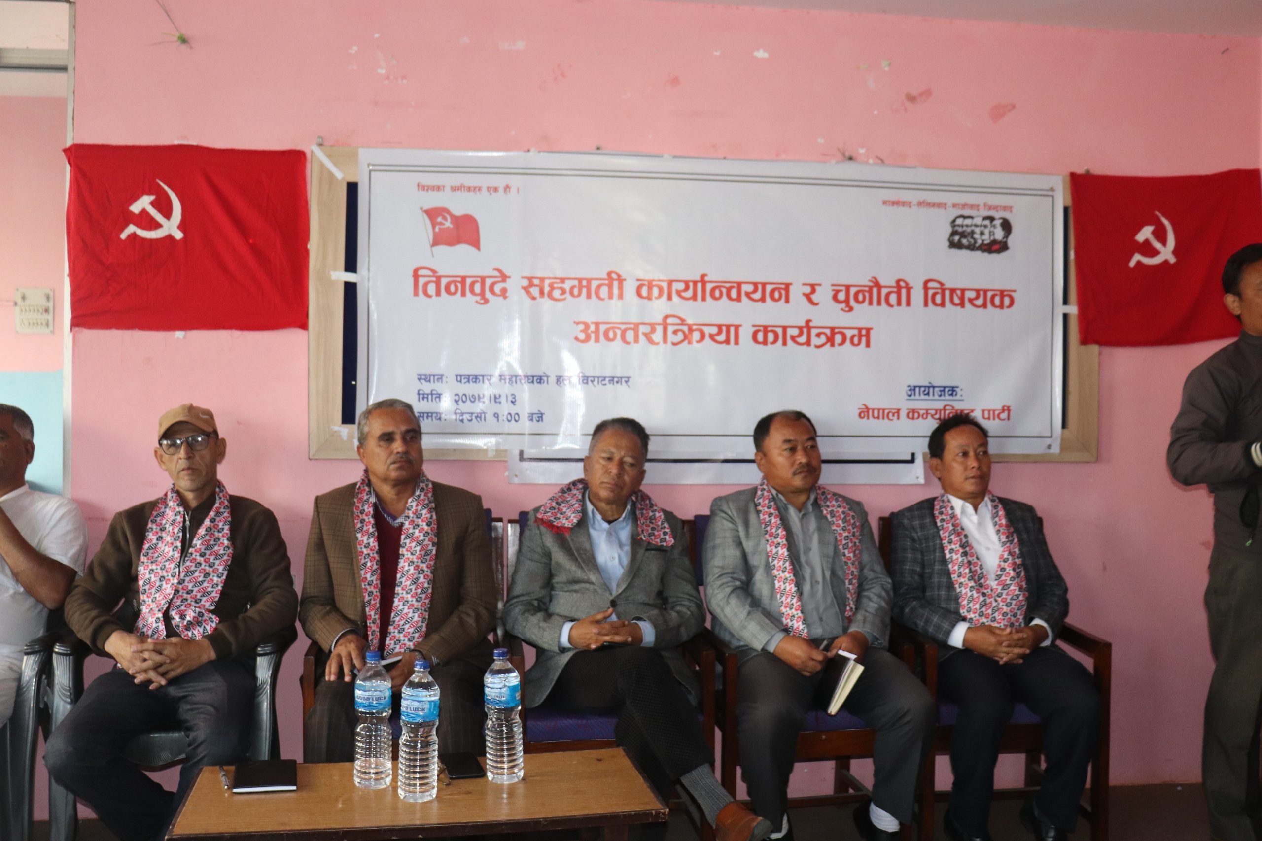 संविधानमा भएका कतिपय त्रुटीहरुलाई सत्तामा बस्नेतहरुकै हितका लागि पनि सच्याउनु जरुरी भएको उनको भनाइ थियो । कार्यत्रफ्ममा नेकपा (एकीकृत समाजवादी)का पोलिटब्यूरो सदस्य महेश रेग्मीले सरकारले ल्याएको अध्यादेश मापफर््त राजनीतिक बन्दीहरुको रिहाइ गर्नुपर्ने बताए । रेग्मीले वृहत कम्युनिष्टहरुको एकता नभएसम्म देशमा अशान्ति भइरहने पनि बताए ।