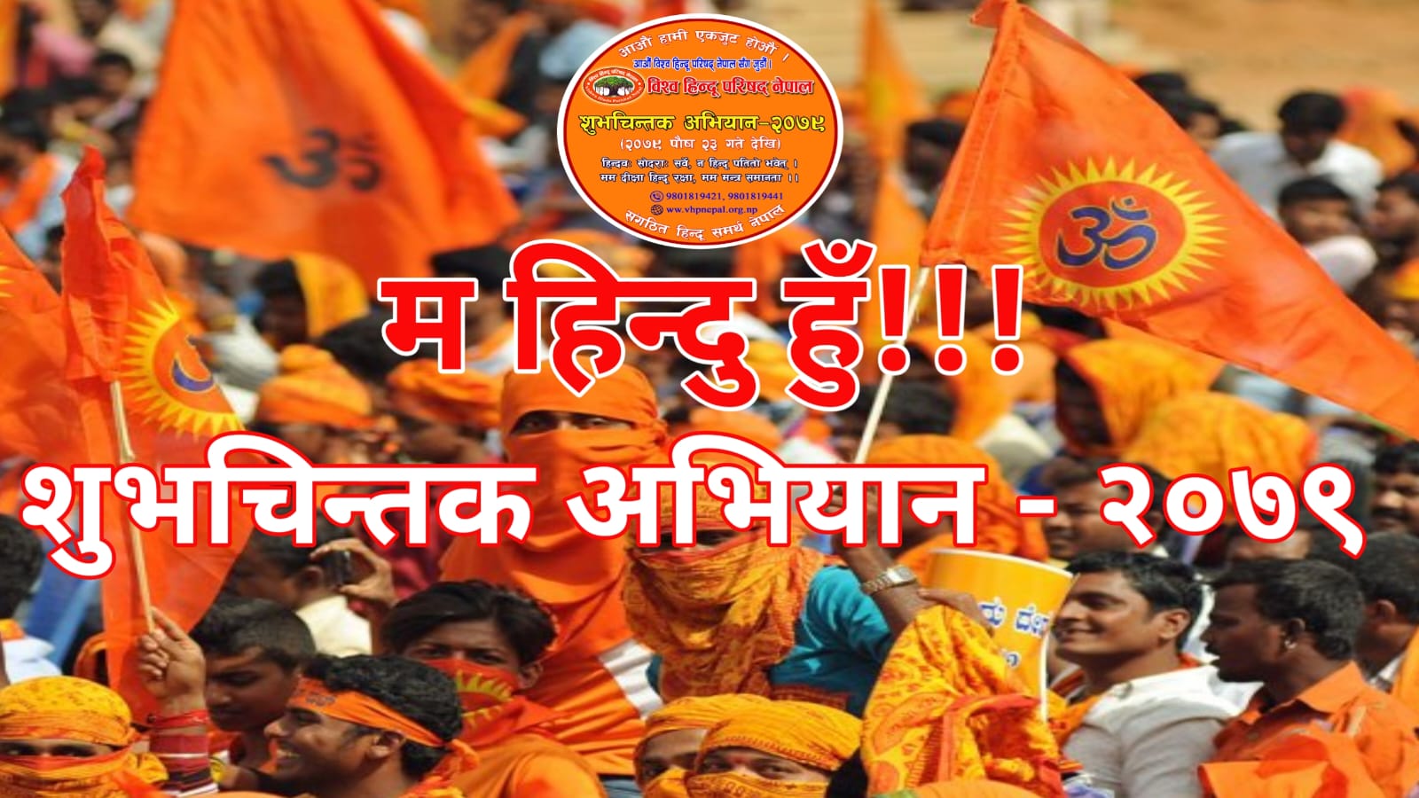 राष्ट्र, धर्म र समाज रक्षा गर्न एवं नेपाल जस्तो पावन देवभूमीबाट धर्मान्तरण, गौहत्या, हिन्दूहरुको अपमान, शोषण, दमन, आतंकवाद, समाजिक भेदभाव, कुरिति, विदेशी घुसपैठ लगायतका विदेशी षडयन्त्रको अन्त्य गरी समरस, जागरुक तथा शक्तिशाली हिन्दू समाज निर्माण गरी गौरवशाली हिन्दू राष्ट्र निर्माण हेतु यस पवित्र अभियानमा सहभागिताको लागि विश्व हिन्दू परिषद् नेपालले सम्पूर्ण सनातन धर्मावलम्बीलाई आह्वान गरेको छ ।