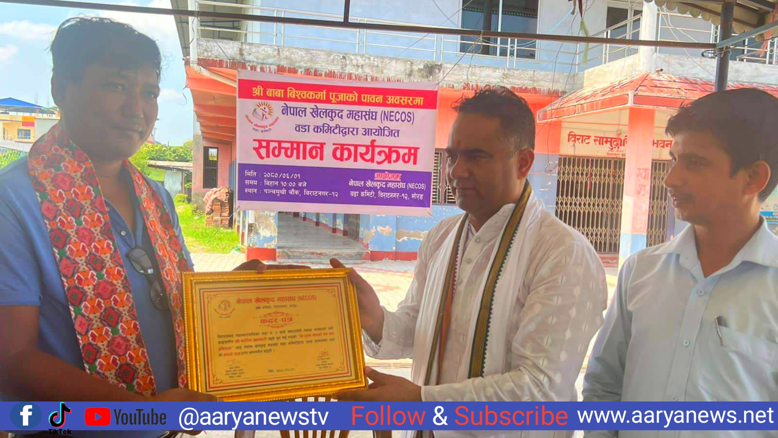 विराटनगरमा लोकप्रिय बन्दै करीम र रबी खेलकूद महासंघका अध्यक्ष बस्नेत द्वारा सम्मान।