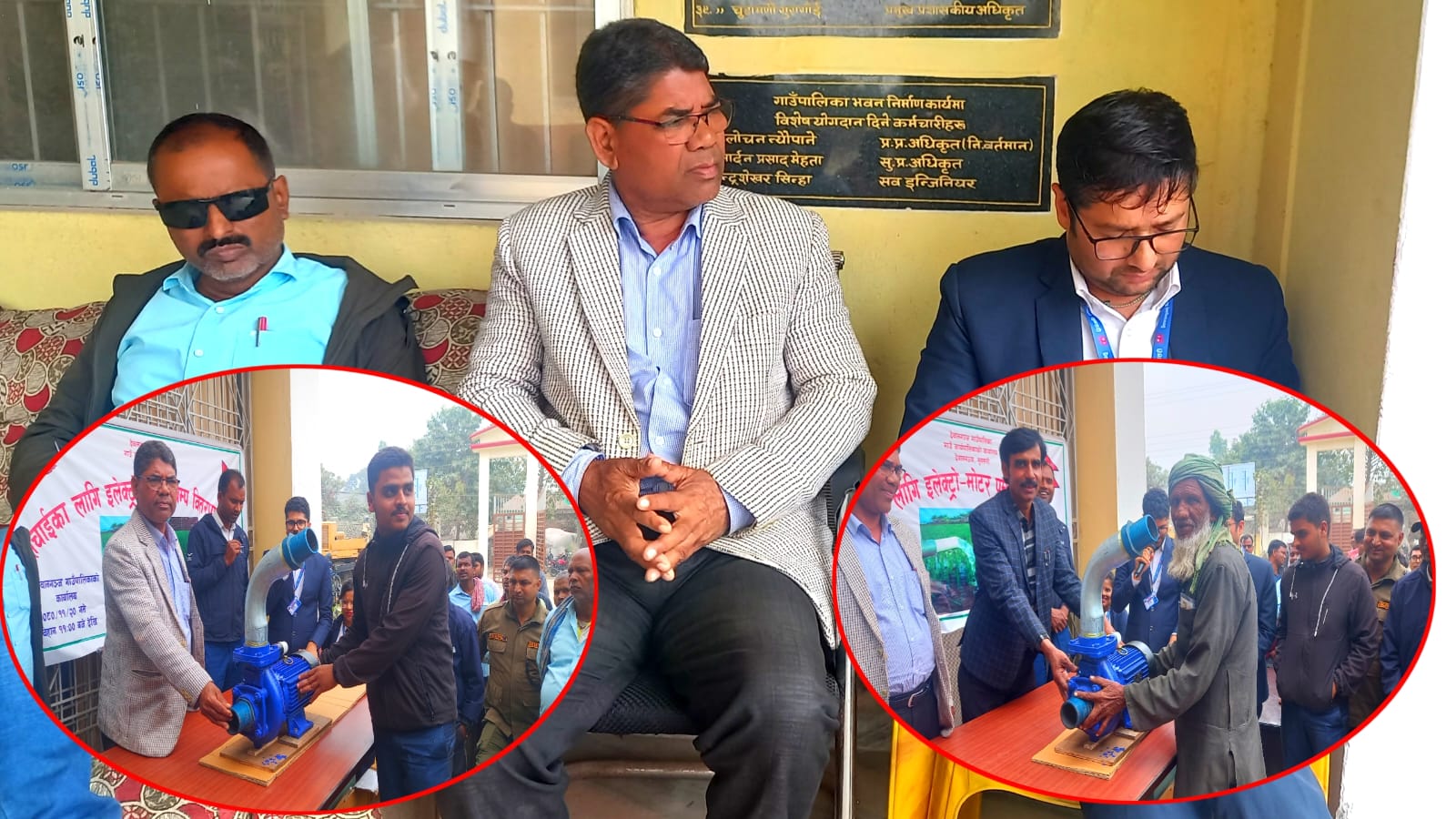पालिकाले आइतबार किसानको लागि इलेक्ट्रो मोटर पम्प वितरण कार्यक्रमको आयोजना गरि पहिलो चरणमा इलेक्ट्रो मोटर पम्प वितरण गर्ने सुरु गरेको कृषि सेवा शाखाले जानकारी दिएको छ। कृषि शाखाको आयोजनामा सम्पन्न भएको इलेक्ट्रो मोटर पम्प वितरण कार्यक्रममा २ सय ७८ जान कृषकले इलेक्ट्रो मोटर पम्प लागेको कुरा कृषि सेवा शाखाका प्राविधिक गुलाब चन्द मेहताले जानकारी दिनु भयो। मेहताका अनुसार लिन छुटेकाहरु कृषि सेवा शाखामा सम्पर्क गरि लिनसकिने छ। नयाँ कृषकको हकमा अर्को सुचना निकाले उहाँले बताउनु भयो।
