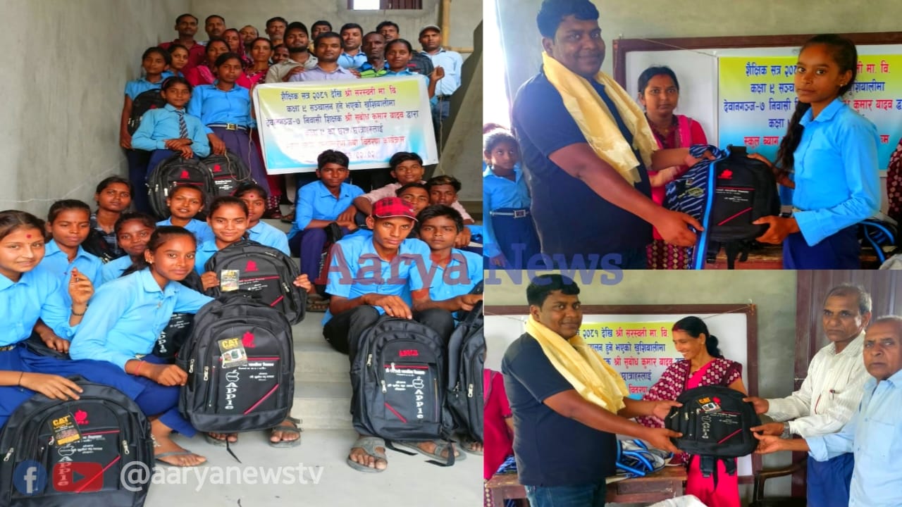 देवानगञ्ज। देवानगञ्जमा एक शिक्षक आफुले पढाउने विद्यालयका विध्यार्थीहरूलाई स्कुल व्याग ( झाेला ) वितरण गर्नुभएकाे छ । देवानगञ्ज गाउँपालिका वडा -७ राजगञ्ज सिनुवारीमा रहेकाे श्री सरस्वती माध्यमिक विद्यालयमा कक्षा ९ संचालनमा आए पछि शिक्षक सुवोद यादवले विध्यार्थीहरूलाई स्कुल व्याग ( झाेला ) वितरण गर्नुभएकाे हो ।