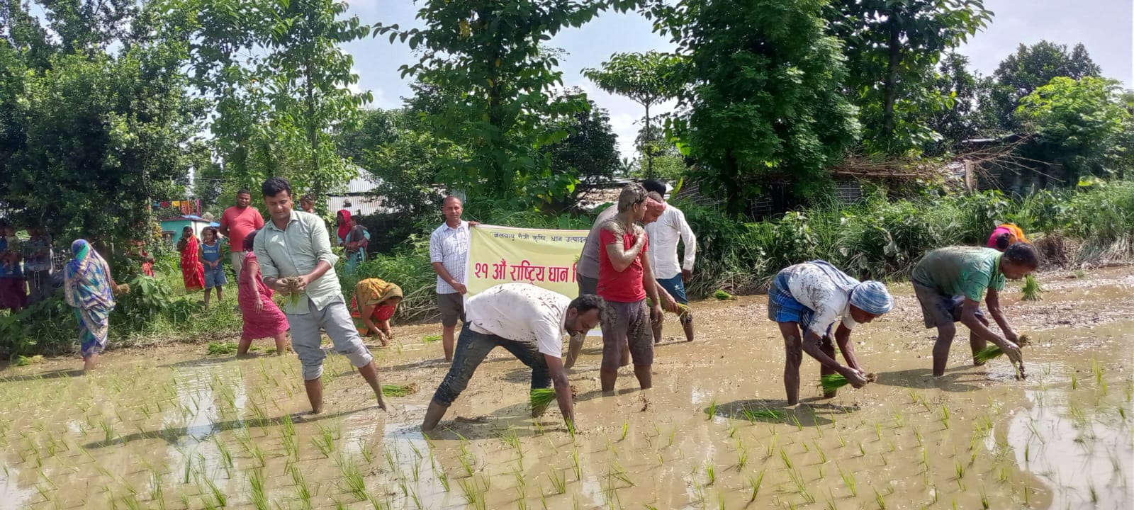 बर्जु । १५ असार अर्थात राष्ट्रिय धान दिवस तथा रोपाई महोत्सवको अवसरमा बर्जु ६ चिमडीमा रोपाइँ गरिएको छ । रणकाली कृषि सहकारी संस्था लिमिटेडको आयोजनामा राम टोलमा शनिबार रोपाई महोत्सवको आयोजना गरिएको सहकारीका व्यवस्थापक दिपेन्द्र मेहताले बताएका छन् ।