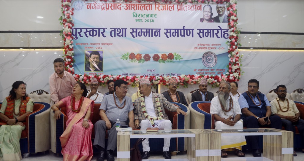पूर्वप्रधानमन्त्री नगेन्द्र प्रसाद – आशालता रिजाल प्रतिष्ठान विराटनगरद्वारा स्थापित रु एक लाख राशिको ज्ञान विज्ञान पुरस्कार डा रुइतलाई र रु एक लाख राशिको धर्म संस्कृति पुरस्कारबाट संस्कृत पाठशालालाई प्रदान गरिएको हो ।
