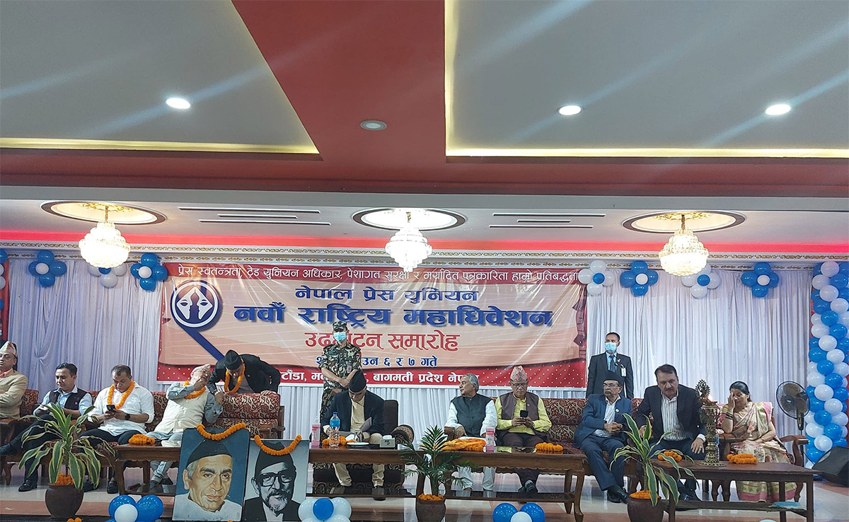 नेपाल प्रेस युनियनको ९ औं राष्ट्रिय महाधिवेशन सुरु:प्रधानमन्त्री एवं नेपाली कांग्रेसका सभापति शेरबहादुर देउवाले उद्घाटन गरे