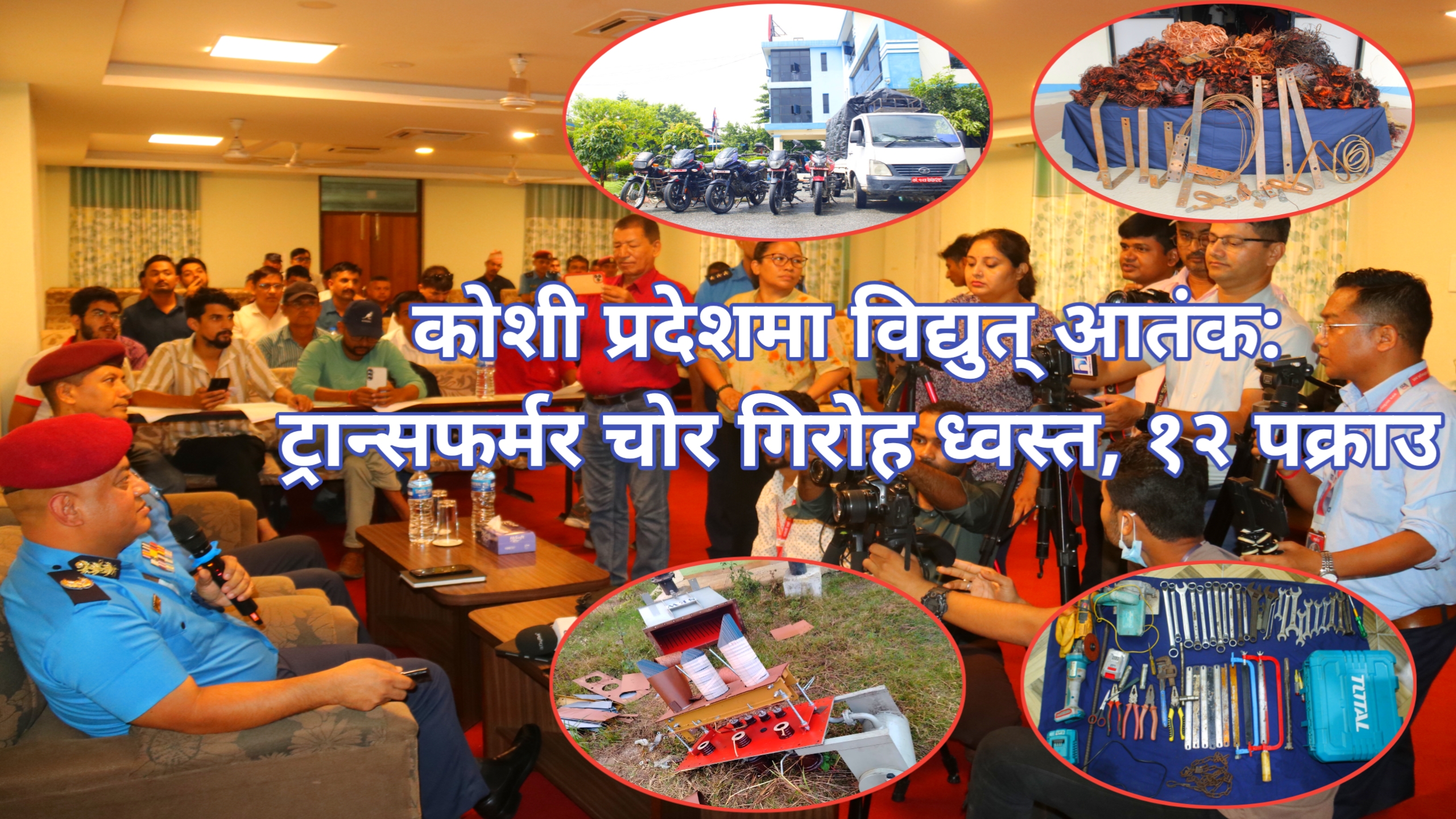 प्रदेश प्रहरी कार्यालय विराटनगरले मंगलबार पत्रकार सम्मेलन गर्दै झापा, मोरङ र सुनसरी जिल्लामा सक्रिय आपराधिक समूहका सदस्यहरूलाई सार्वजनिक गरेको हो। प्रहरीले चोरीमा संलग्न ७ जनासहित चोरीको सामान किन्ने ५ जनालाई समेत नियन्त्रणमा लिएको जनाएको छ। प्रारम्भिक अनुसन्धानबाट उक्त गिरोहले योजनाबद्ध र शृंखलाबद्ध रूपमा २२ वटा ट्रान्सफर्मर चोरी गरेको पाइएको छ।
