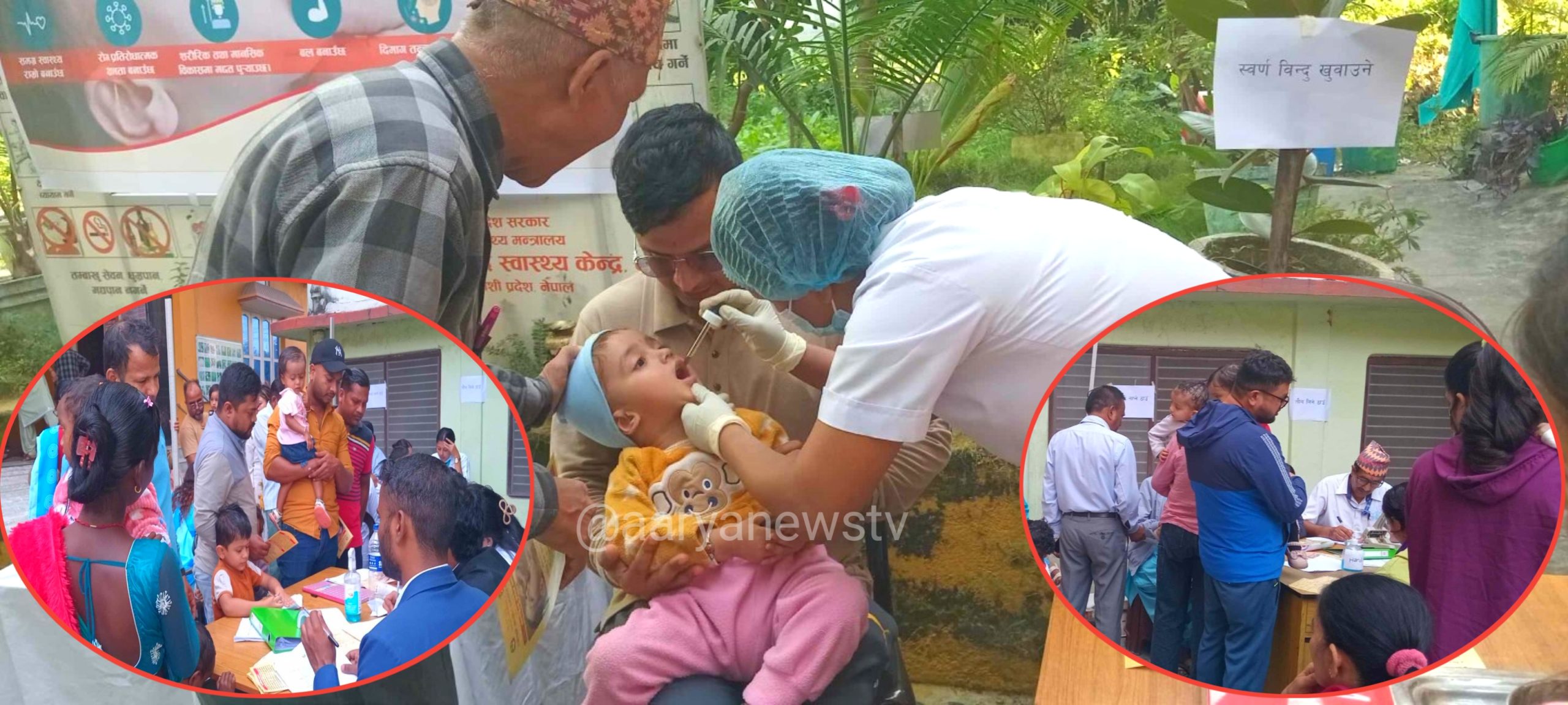 आयुर्वेद पद्धतिअनुसार पुष्प नक्षत्रको दिन पारेर एक वर्षदेखि पाँच वर्षमुनिका बालबालिकालाई स्वर्ण बिन्दु प्राशन खुवाइएको केन्द्रले जनाएको छ।