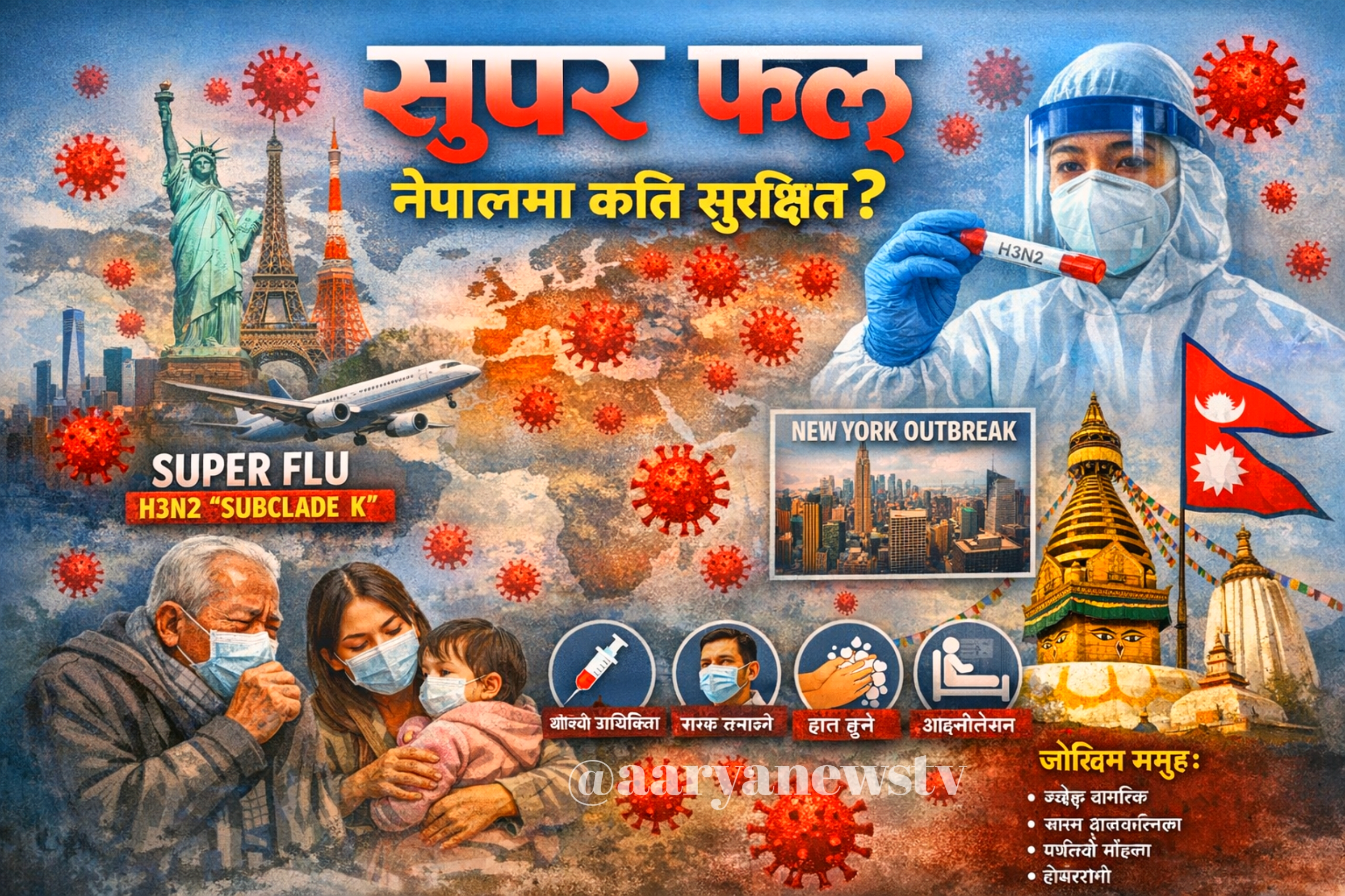 विश्वका विकसित मुलुकहरू—बेलायत, क्यानडा, फ्रान्स, स्पेन, जर्मनी, अमेरिका र जापान—मा तीव्र गतिमा फैलिरहेको तथाकथित ‘सुपर फ्लु’ भाइरसले युरोप तथा अमेरिकाका स्वास्थ्य प्रणालीलाई सतर्क बनाएको छ। यही सन्दर्भमा, यो भाइरस नेपालसम्म आइपुग्ला कि नपुग्ला भन्ने विषयले स्वास्थ्यकर्मी र सरोकारवालामाझ चासो र चिन्ता बढाएको छ।