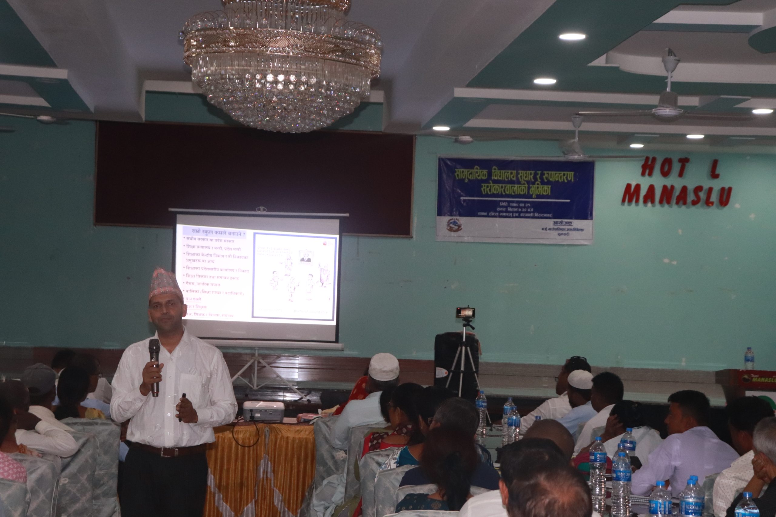 शुक्रबार विराटनगर–४ बरगाछीस्थित मनास्लु होटलमा आयोजित ‘सामुदायिक विद्यालय सुधार र रूपान्तरणमा सरोकारवालाको भूमिका’ विषयक गोष्ठीमा सरोकारवाहरूले यस्तो बताएका हुन्।