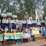 पोखरीको घाटमा कला र शिल्प कोर्दै छात्र-छात्राहरू